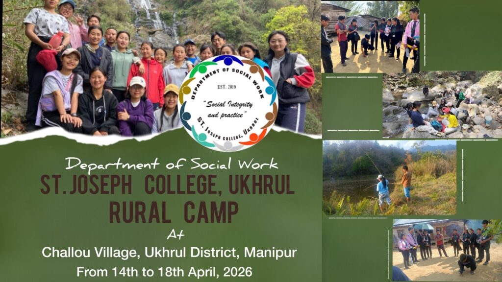 Ukhrul, Manipur | EKHON: Our rural camp in Challou Village undertaken by the Department of Social Work, St. Joseph College, Ukhrul, from 14th to 18th April, was a deeply meaningful experience marked not merely by observation but by genuine human connection. Beyond the visible realities of rural life, we encountered a community rooted in warmth, unity, generosity, and compassion. What stood out most was the village’s leadership. The dedication and sincere concern shown by the villagers, led by Headman Leishisan A. Shatsang, Secretary Thotreiyo A. Shatsang, Accountant Solem A. Shatsang, and Woryao Lungleng, created a safe and reassuring environment. Their leadership reflected responsibility, cooperation, and genuine care, making unity not only visible but deeply felt.