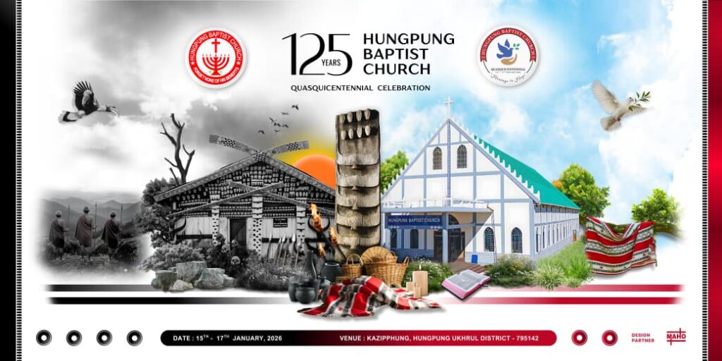 Hungpung, Manipur: Hungpung Baptist Church in Ukhrul District, Manipur, is celebrating its Quasquicentennial (125th Anniversary) from January 15-17, 2026, under the theme ‘Heritage to Hope’. Hungpung Baptist church holds an important place in Manipur’s Christian history as one of the earliest churches in the region.