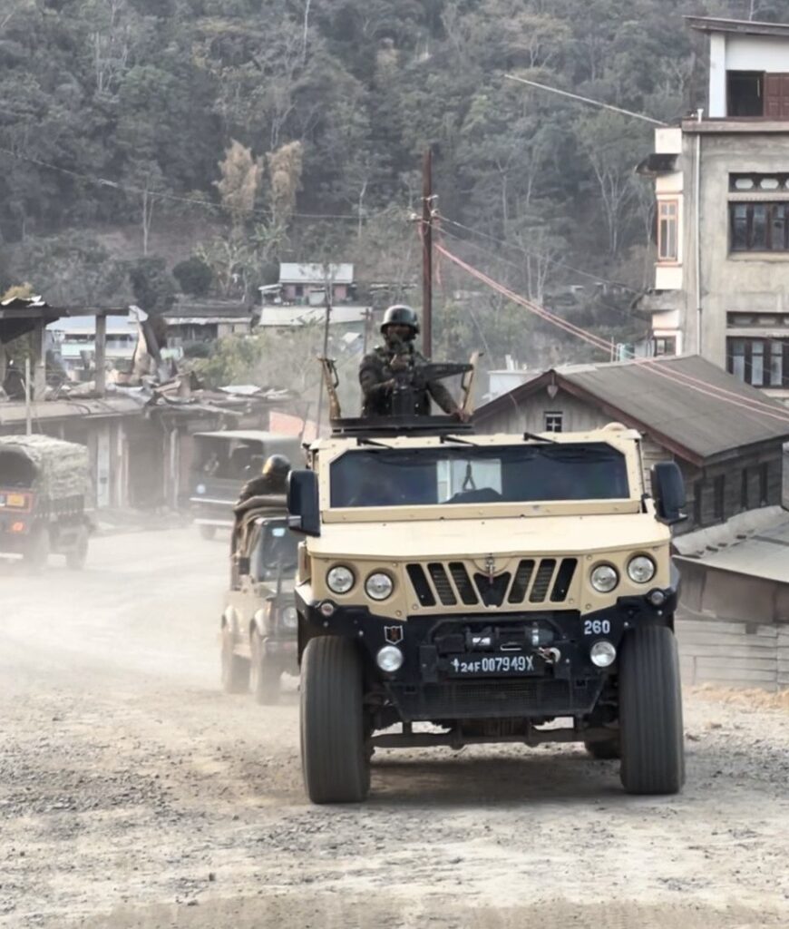 Indian army patrolling Litan, Ukhrul district, Manipur in the aftermath of Naga-Kuki crisis since 8th February, 2026.